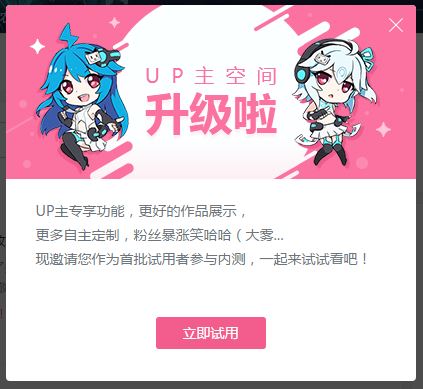 就在昨天,在我连续一个多星期没有上B站网页端,偶然间打开进入了个人空间后,弹出一个邀请参加改版后新空间的窗口。(呵呵,原来还是系统随机邀请的,我还是个内测者啊233)