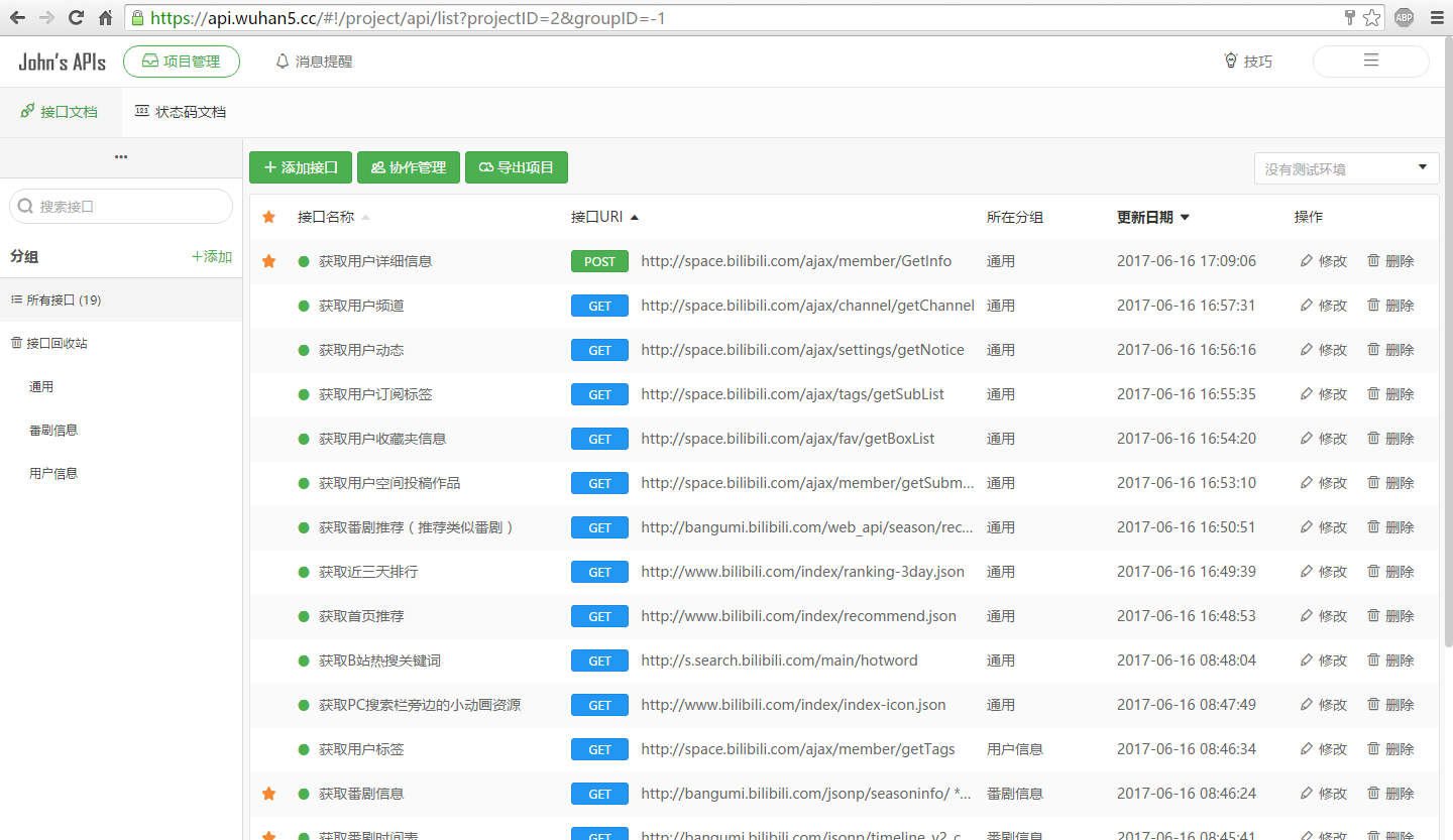 放在子域 api 下,https 访问。可以看到我已经将之前扒到的B站 API 整理添加进去了,在线跨域调试,美滋滋。