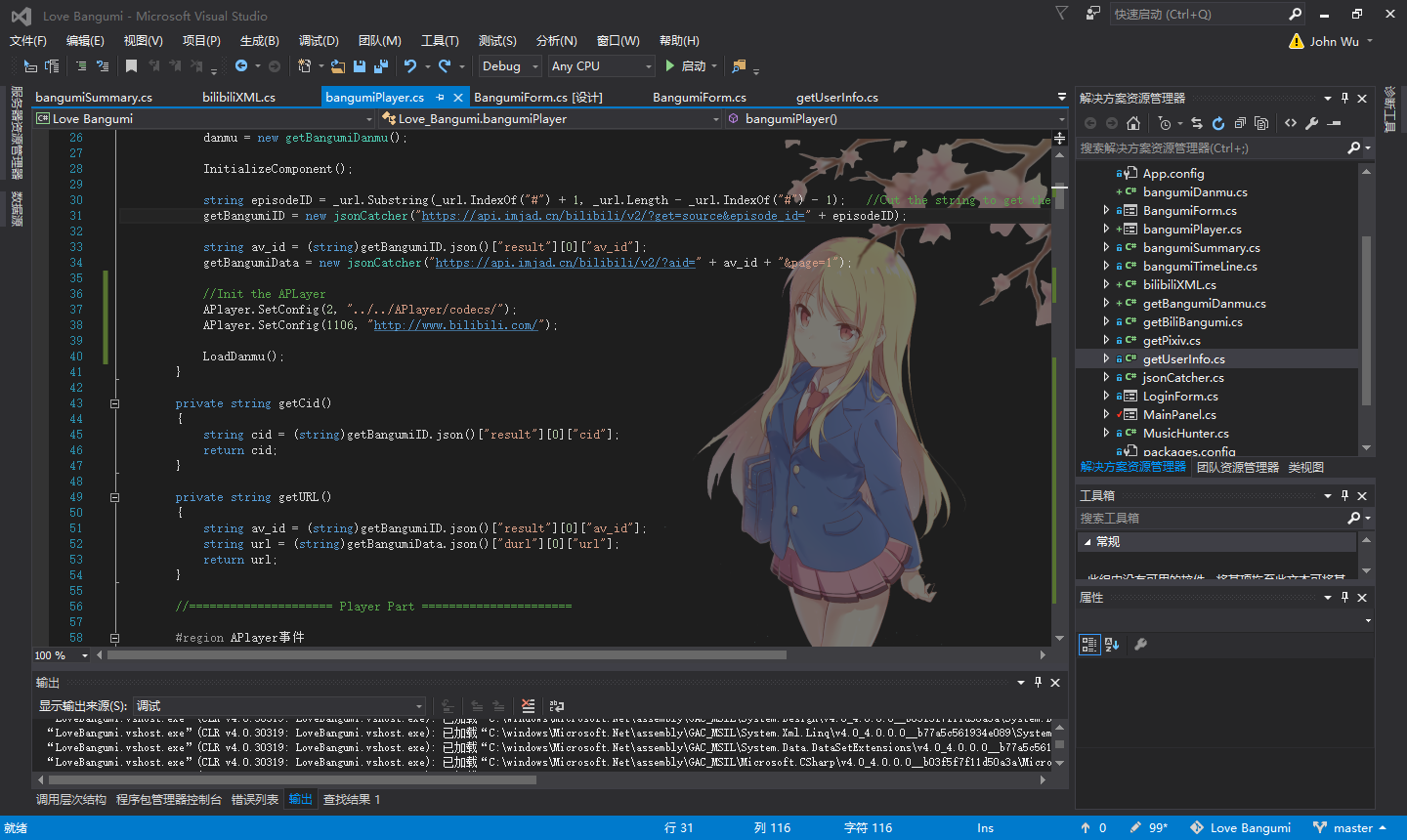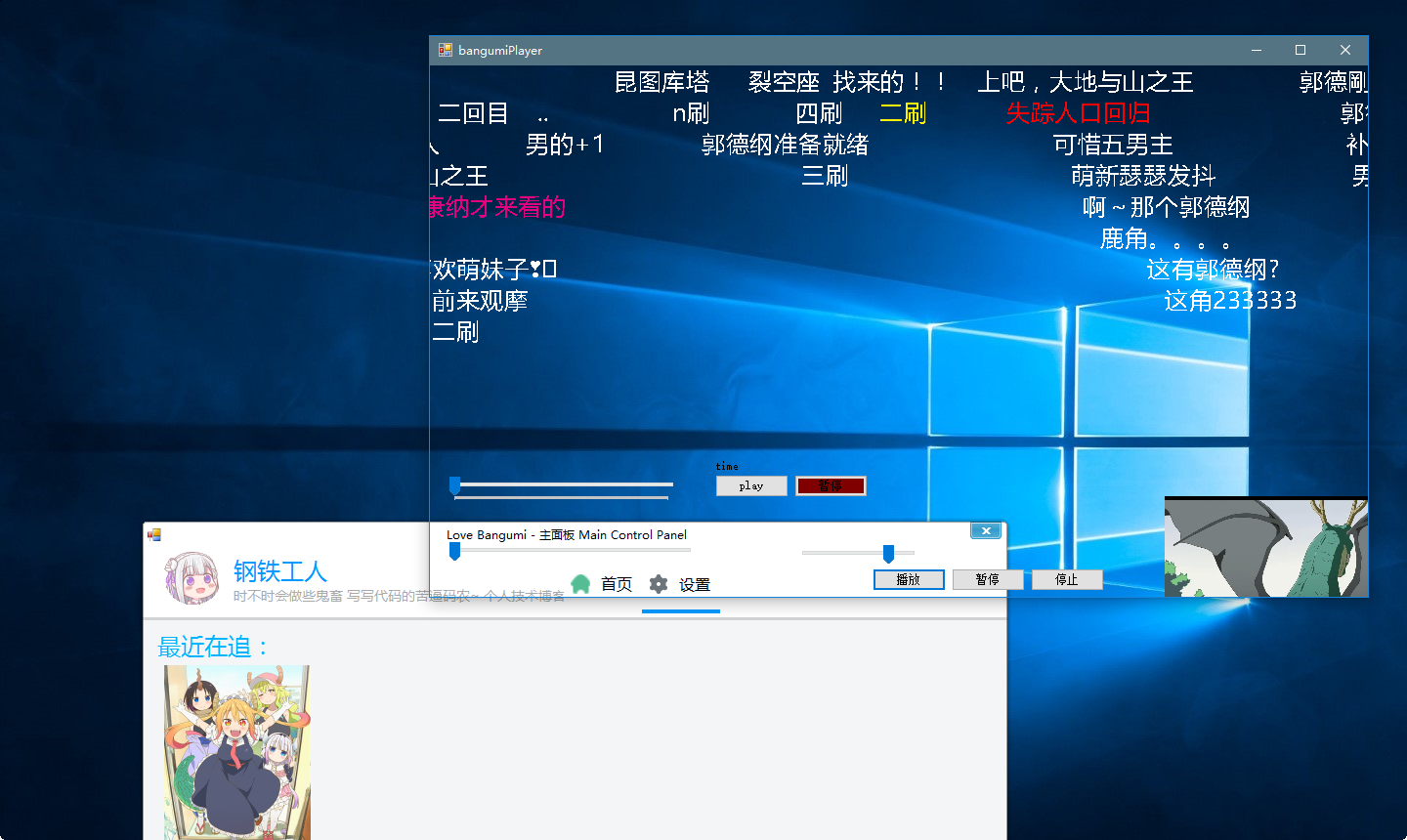 最近是重写了几个之前写的逻辑比较混乱的类,比如那个获取番剧信息的,我本来是打算全部集中在一个类里面的。但是我却在首页窗体里直接写了调用 json 获取番剧......这一点都不 OOP 。嘛,不扯这个了。这几天尝试着在做最难得一个部分——番剧的播放,还要带弹幕……