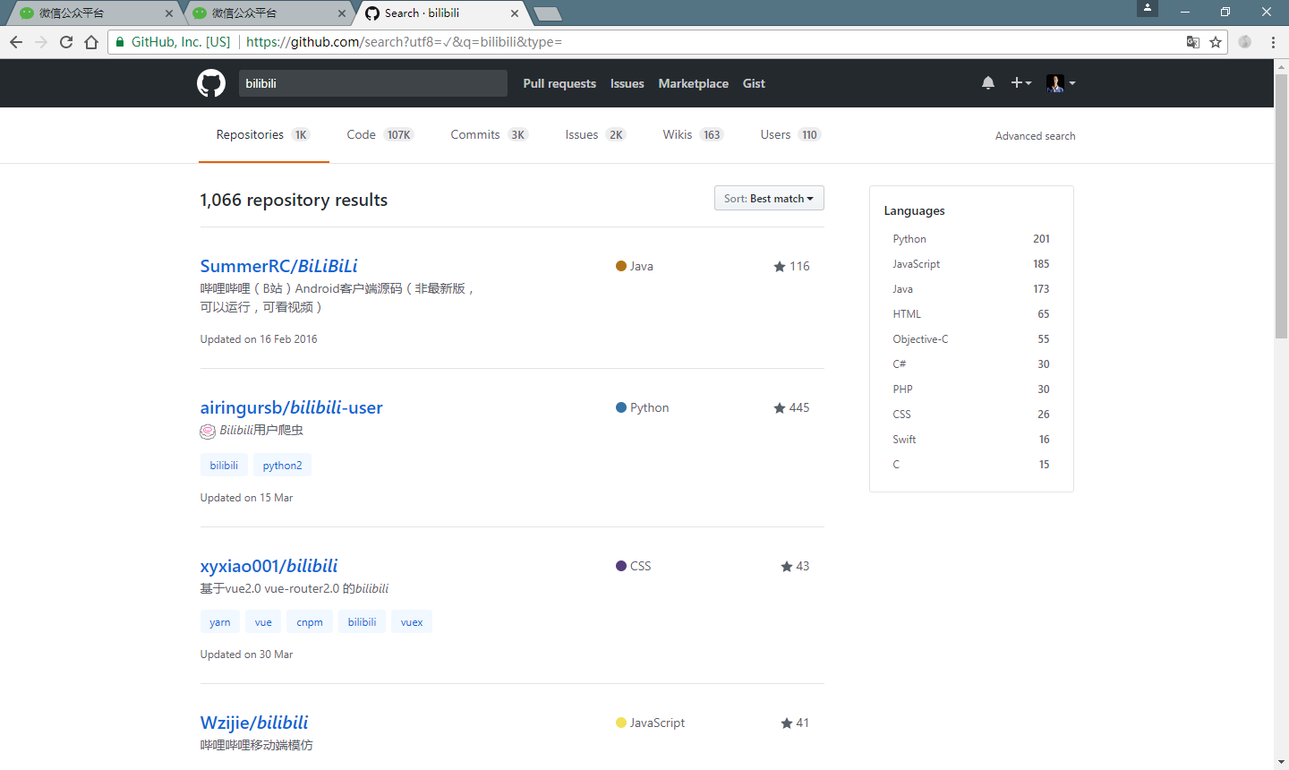 1000+的 repo,107000+的代码量,看的都可怕。其中有爬虫,客户端源码,弹幕屏蔽正则表达式等…… 然而一筛选 C# 的 repo,瞬间就少了很多。运气特别好的是,我居然找到了一个用 C# 写的b站弹幕获取并播放的工程。兴奋地二话不说直接fork过来。