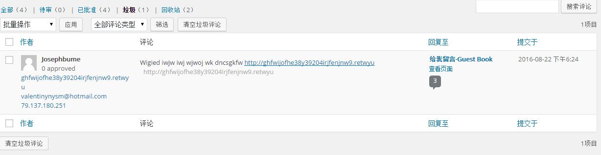 今天登录进Light Cube后台,忽然发现在仪表盘下面显示Akismet拦截了一条垃圾评论!