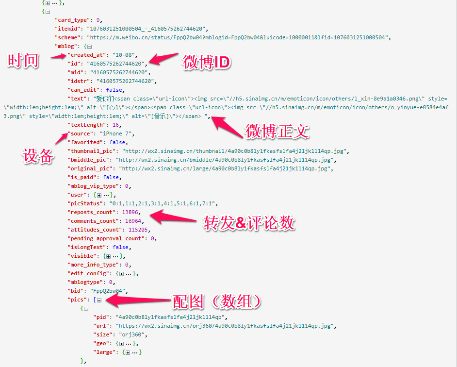 其实这个程序的运行效率还可以提高。在存储微博 JSON 到本地时,JSON 文件中其实还包含了许多我们用不到的信息,比如博主的个人信息介绍之类的。我们可以在存储前先将这些节点删除。要知道这样一个 JSON 文件大小达 50 KB 啊!!加载解析起来还是挺费事的。